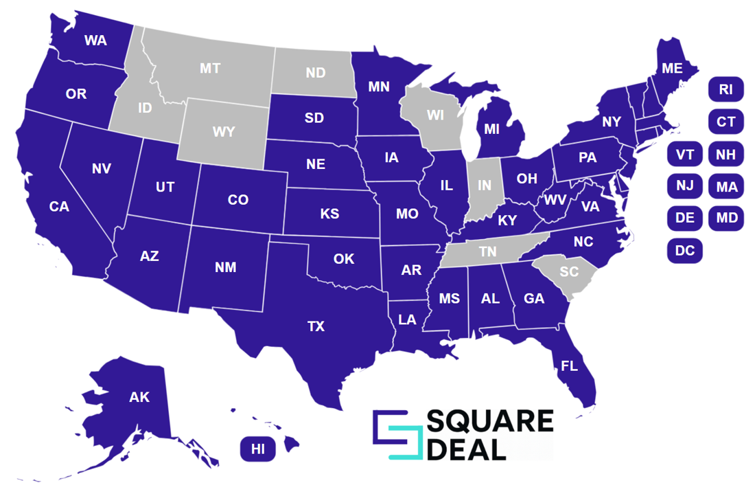 When you work with Square Deal, you’re working with a team of industry experts and leaders within the highly regulated industries sphere who bring not only decades of experience to the table, but experience across over 40 states and territories. We’ve worked with or are currently working with clients from Alaska to Florida, from California to Connecticut.